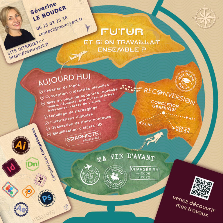 Toujours attirée par les métiers créatifs, et issue d'une formation de scripte dans l'audiovisuel, je me suis formée à celui de concepteur graphique.